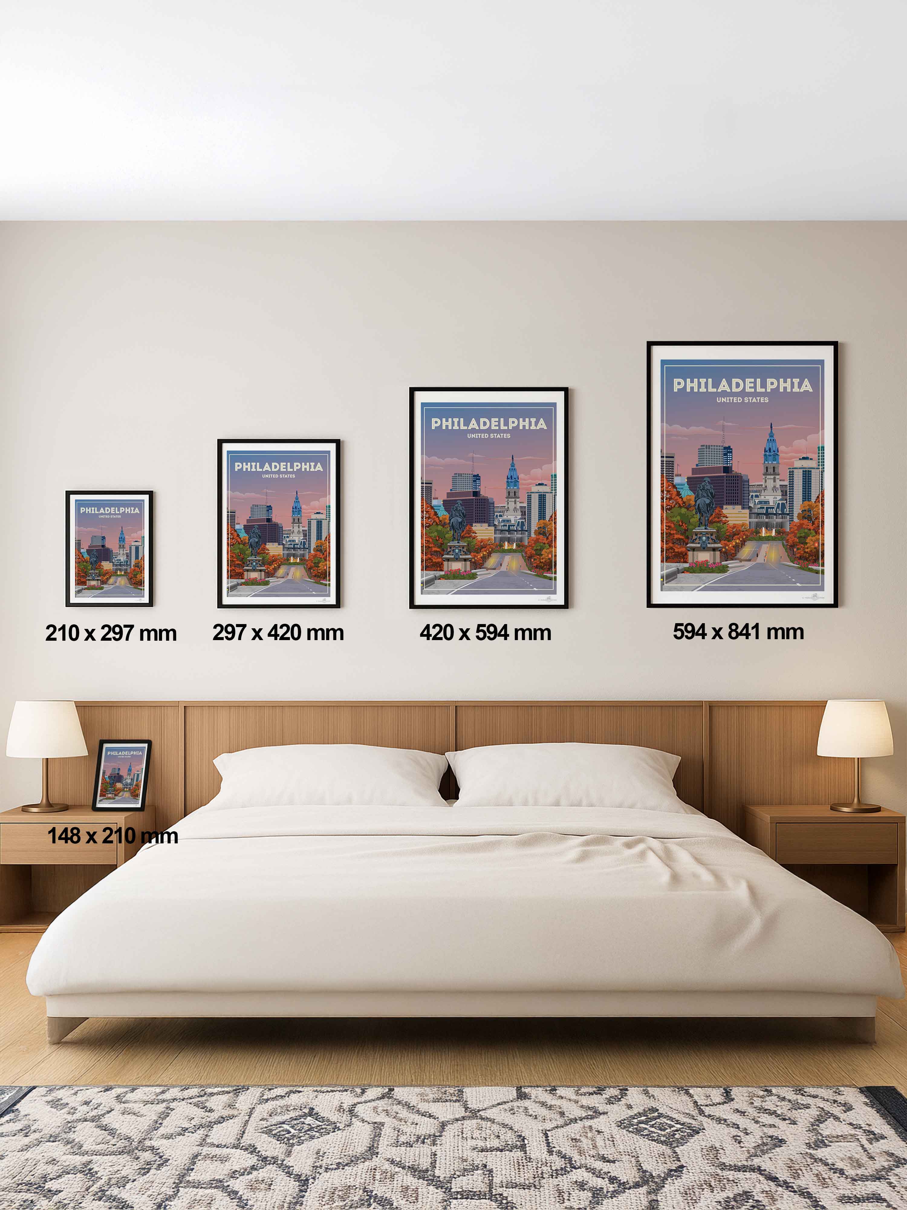 We offer each of our unique travel poster designs in the following sizes: