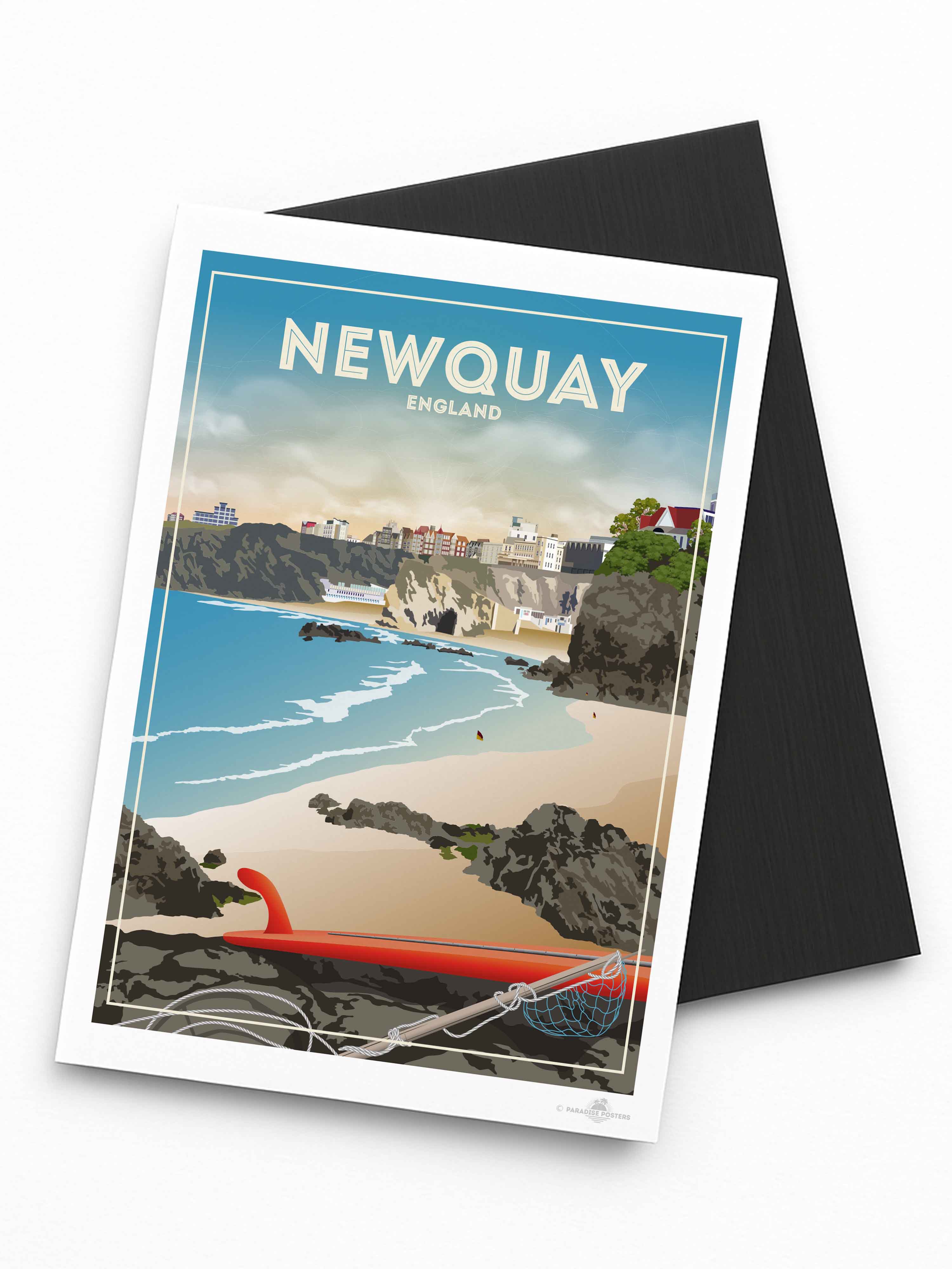 The beach shown in our poster design is Towan Beach. This is the closest to the town at the bottom of a steep hill, and its prime location makes it extremely popular in the summer months. One of the most unusual sights you will see at Towan Beach is a small house perched on top of a large rock, known as The Island Accessed view a suspension bridge from the mainland, the house is rented out as a holiday home for tourists to experience possibly the ultimate beach house that offers amazing views over the coast.