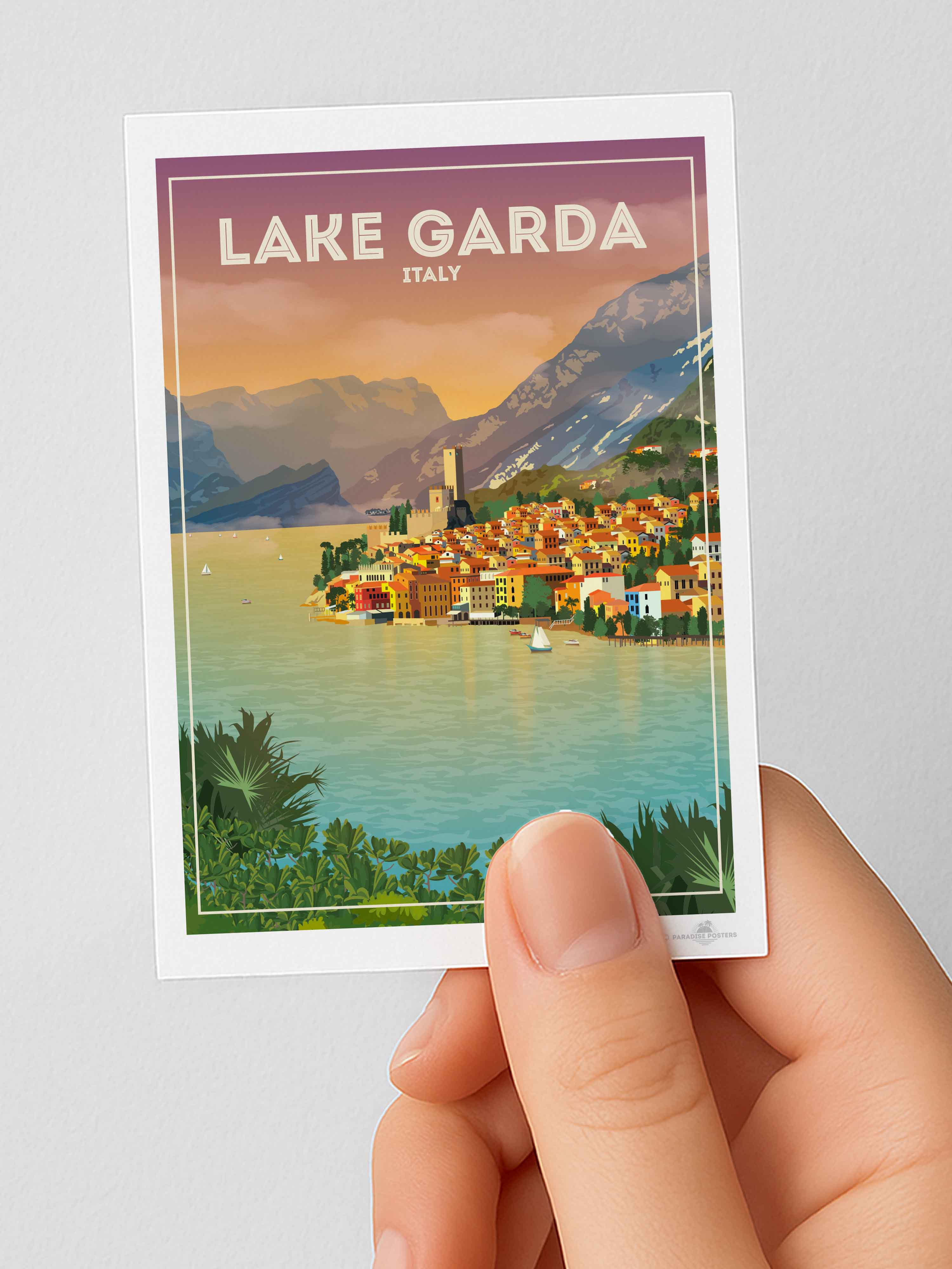 Der Bereich des Gardasees, den wir in unserem Posterdesign dargestellt haben, ist die Stadt Limone; eine Stadt an einer Klippe mit traditionellen Villen, einer belebten Promenade und umrahmt von Zitronenhainen, die der Gegend einen köstlichen, berauschenden Duft verleihen. Obwohl Limone heute sehr beliebt ist, war es ziemlich abgelegen und konnte bis in die 1930er Jahre nur mit dem Boot erreicht werden, bis eine Straße vom benachbarten Riva gebaut wurde. Für diese altmodischen, authentischen Menschen entscheiden sich einige Reisende immer noch dafür, mit dem Boot nach Limone zu fahren, um die Schönheit der Stadt vom Wasser aus zu genießen.