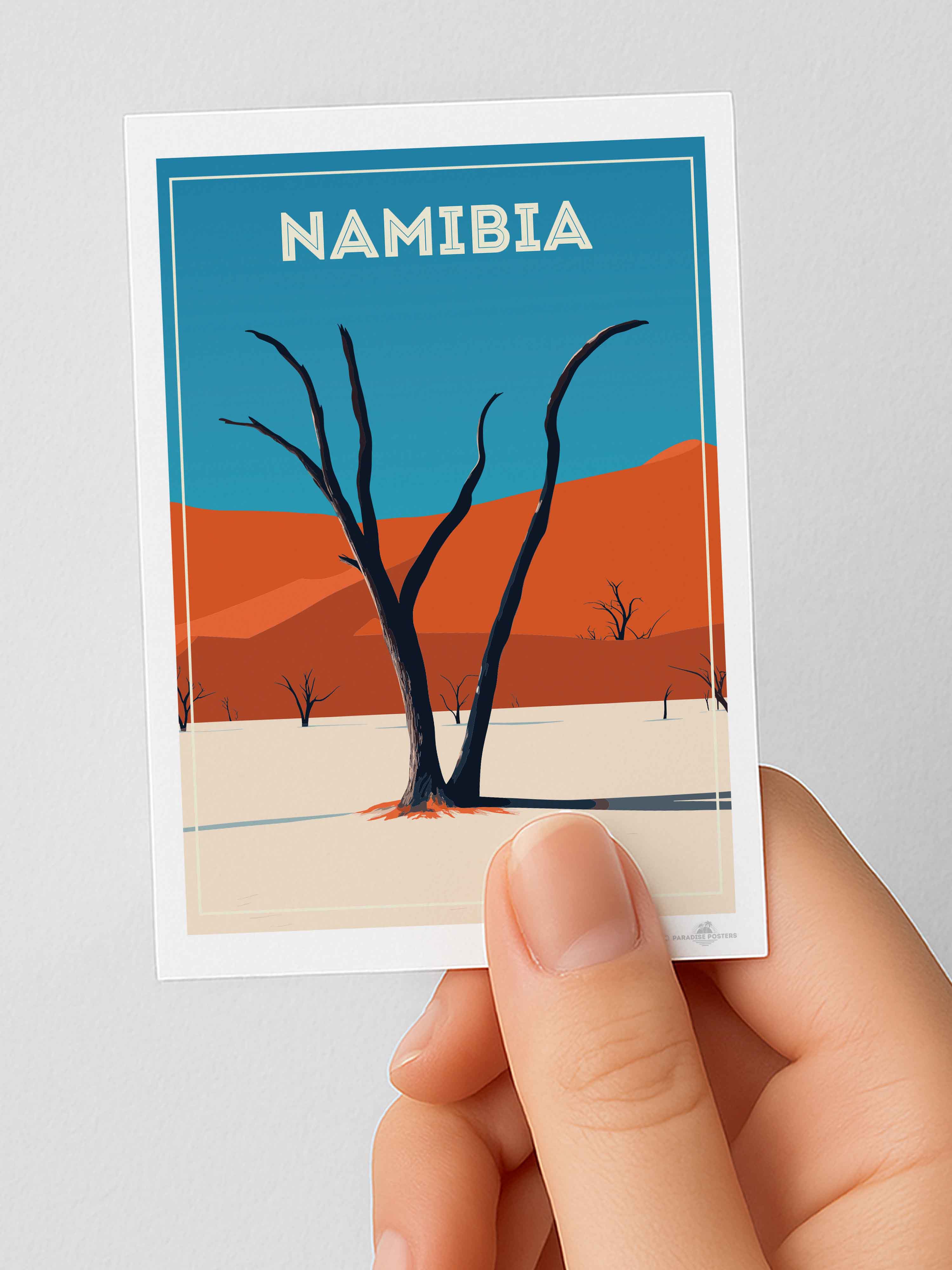 Με σχέδιο εμπνευσμένο από vintage και ζεστούς, γήινους τόνους, αυτή η αφίσα θυμίζει την ακατέργαστη, αδάμαστη γοητεία των ερήμων, της άγριας ζωής και των δραματικών ουρανών της Ναμίμπια. Είναι απαραίτητο για τους λάτρεις των ταξιδιών, τους λάτρεις της περιπέτειας και τους λάτρεις της φύσης που ονειρεύονται ανοιχτούς χώρους και αξέχαστα ηλιοβασιλέματα της Αφρικής.