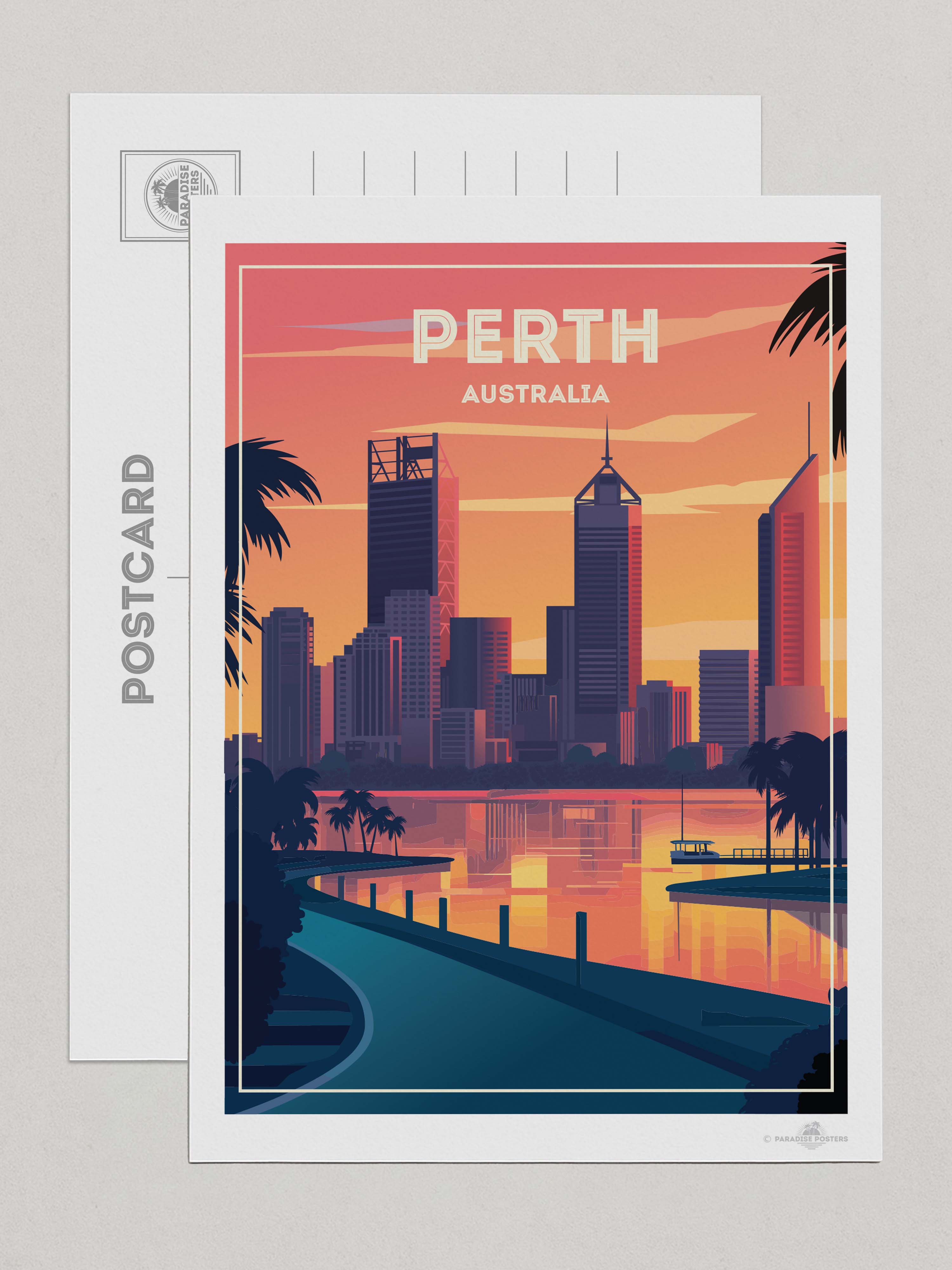 Perth, the sun-soaked capital of Western Australia, is a perfect blend of natural beauty, urban charm, and artistic flair—an ideal subject for vibrant travel posters. Set against the dazzling blue waters of the Indian Ocean, the city boasts pristine beaches like Cottesloe and Scarborough, perfect for sunbathing, surfing, and unforgettable sunsets. The Swan River meanders through the city, offering picturesque views and lush riverside parks, like Kings Park, one of the largest inner-city green spaces in the world.