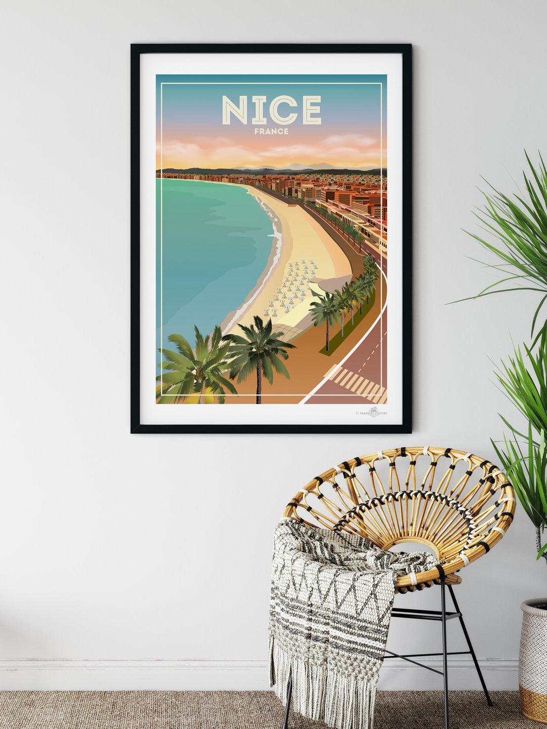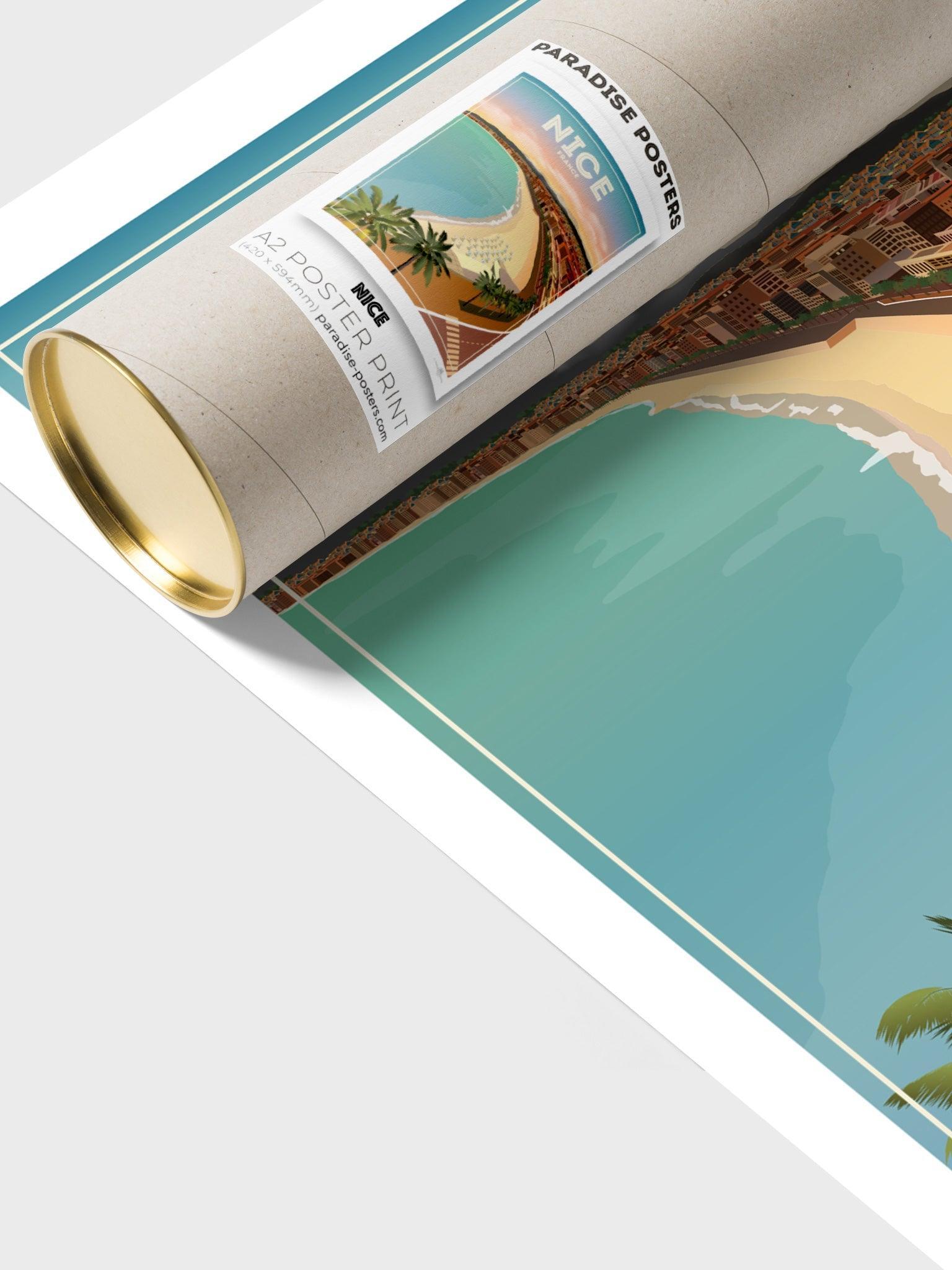 Introducing our original creation, the Nice France Poster Print. This stunning travel poster captures the beauty and charm of Nice, France in a unique and artistic way. Our team takes great pride in using only the highest quality paper for printing, ensuring that each poster is a true work of art. Handmade with care, each product is carefully packed and shipped from our team in the United Kingdom. With 100% of our production taking place in the UK, you can trust that you are receiving a truly authentic and top-notch product. Add a touch of elegance and wanderlust to your home or office with our Nice France Poster Print.