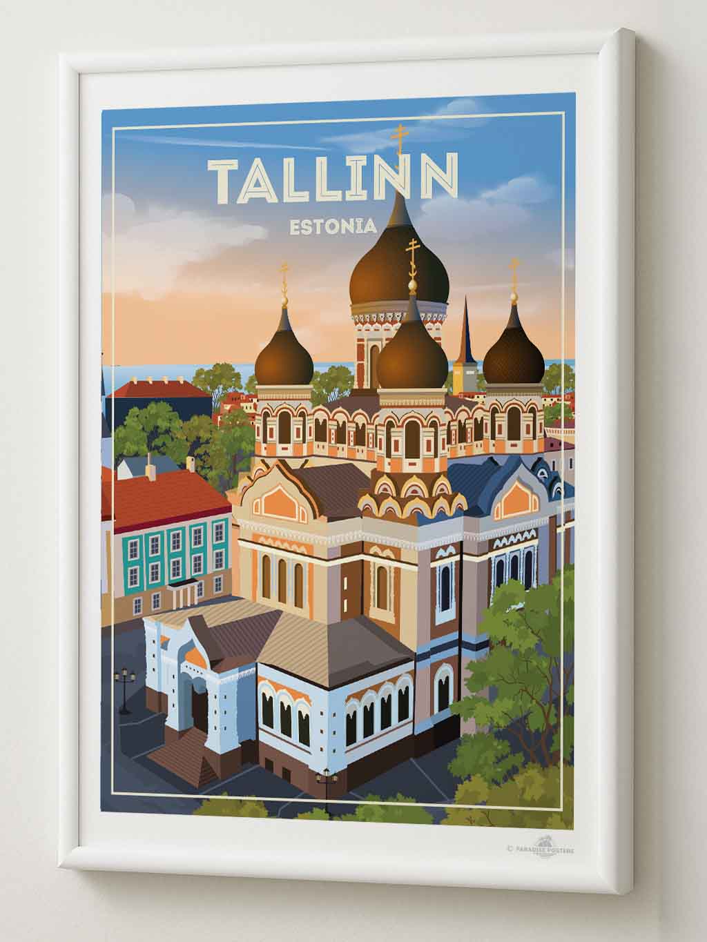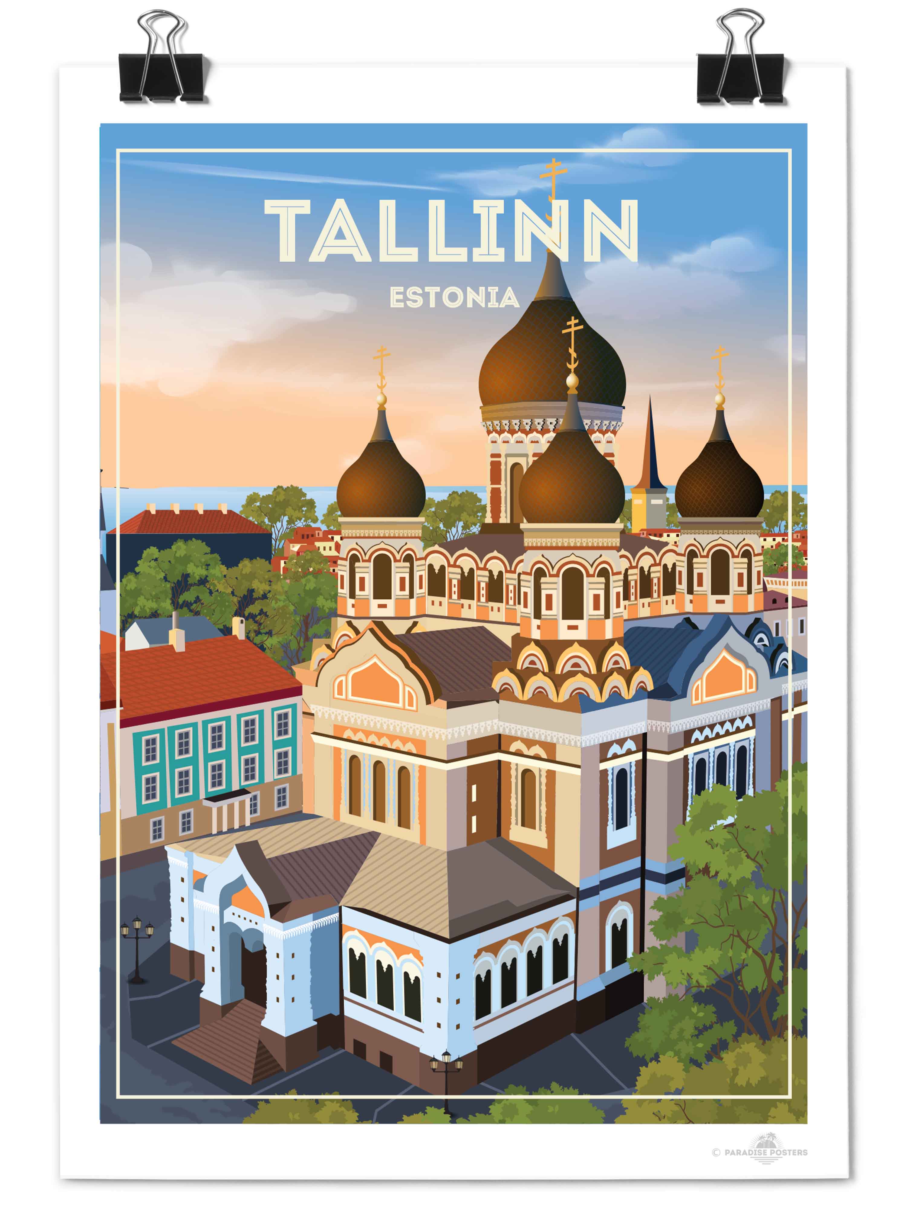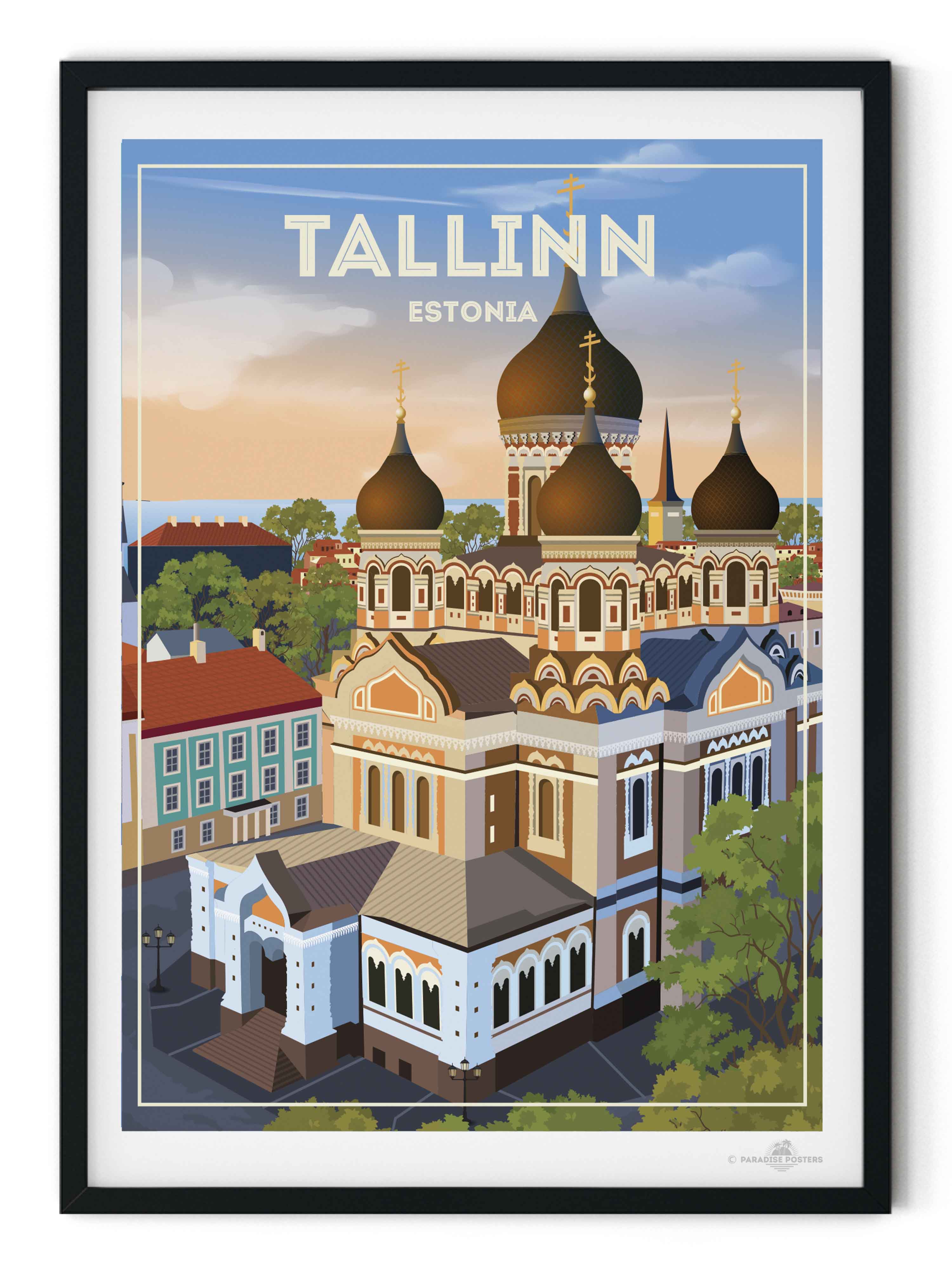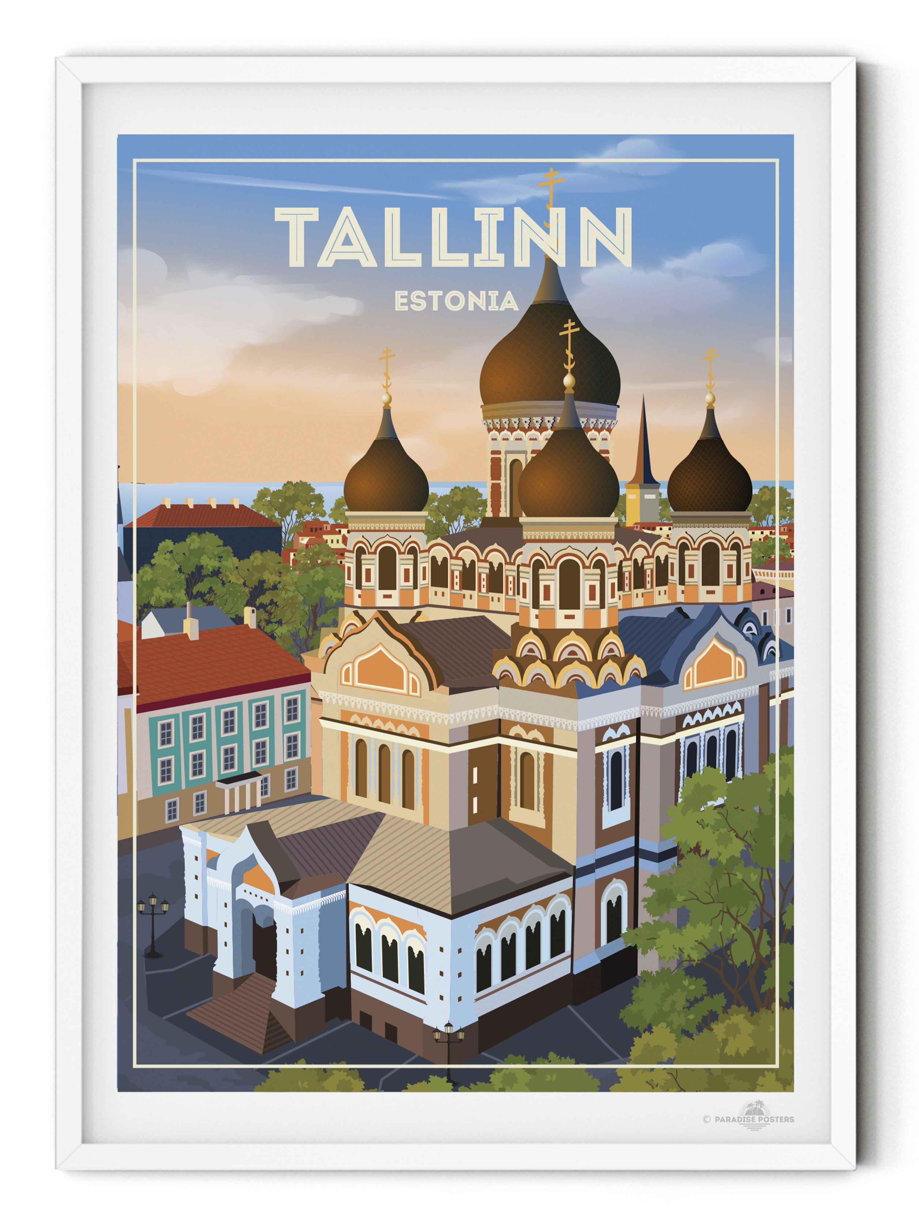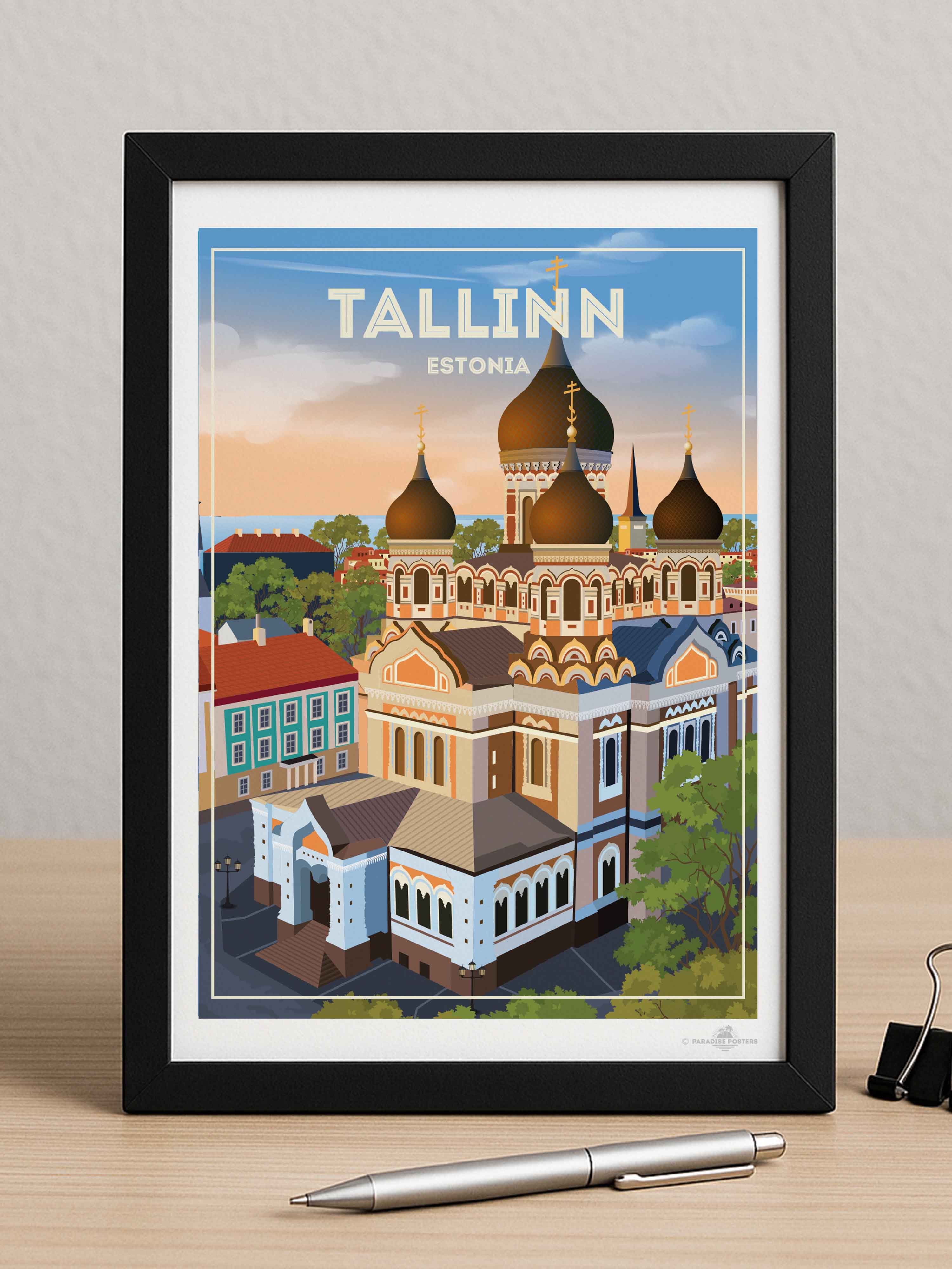 Step into the charming cityscape of Tallinn, Estonia, captured in warm, soft hues that echo a tranquil sunset sky. This artwork highlights the iconic onion domes of Tallinn’s historic architecture, set against a serene backdrop of pastel blues and gentle oranges.
