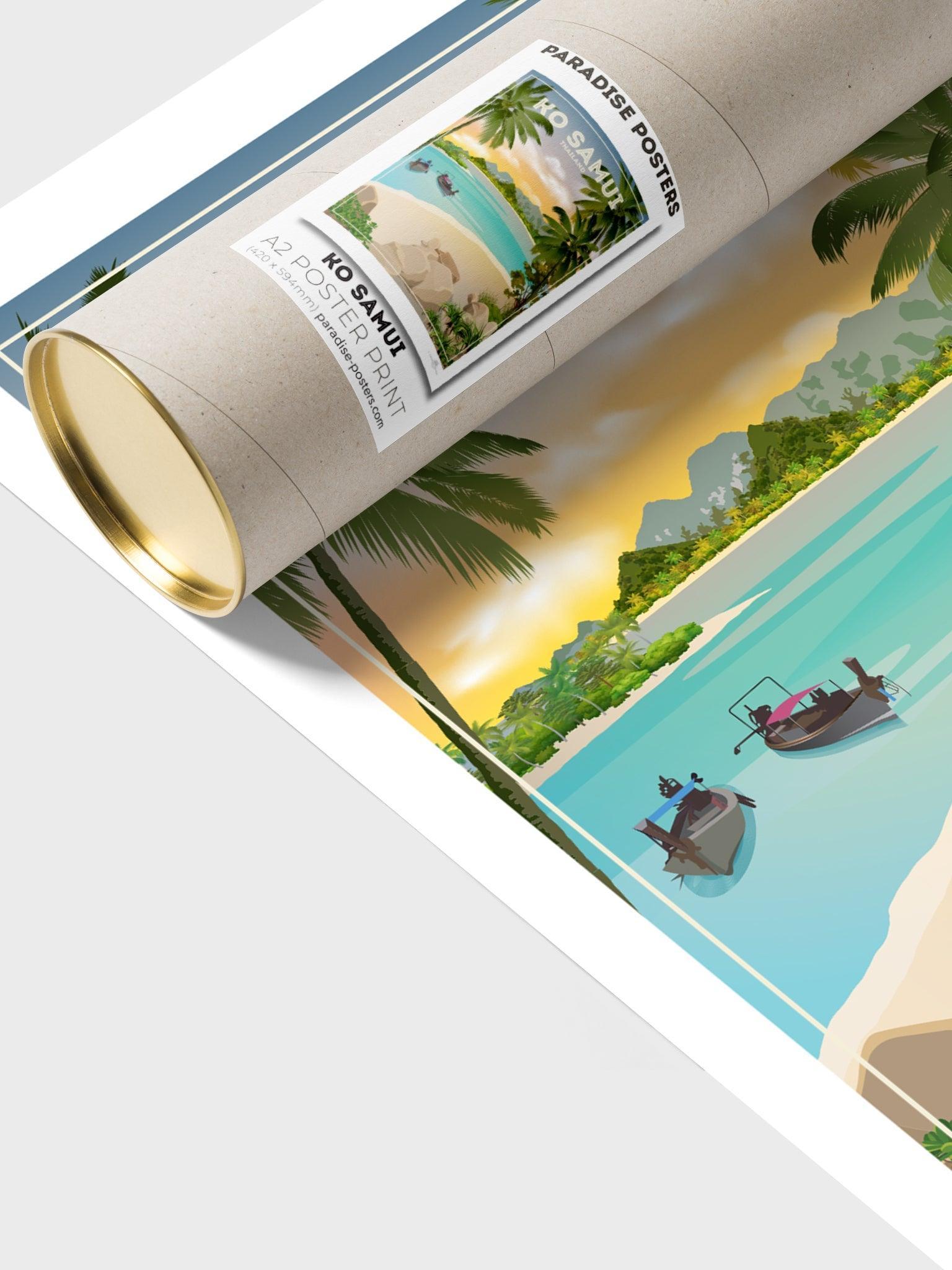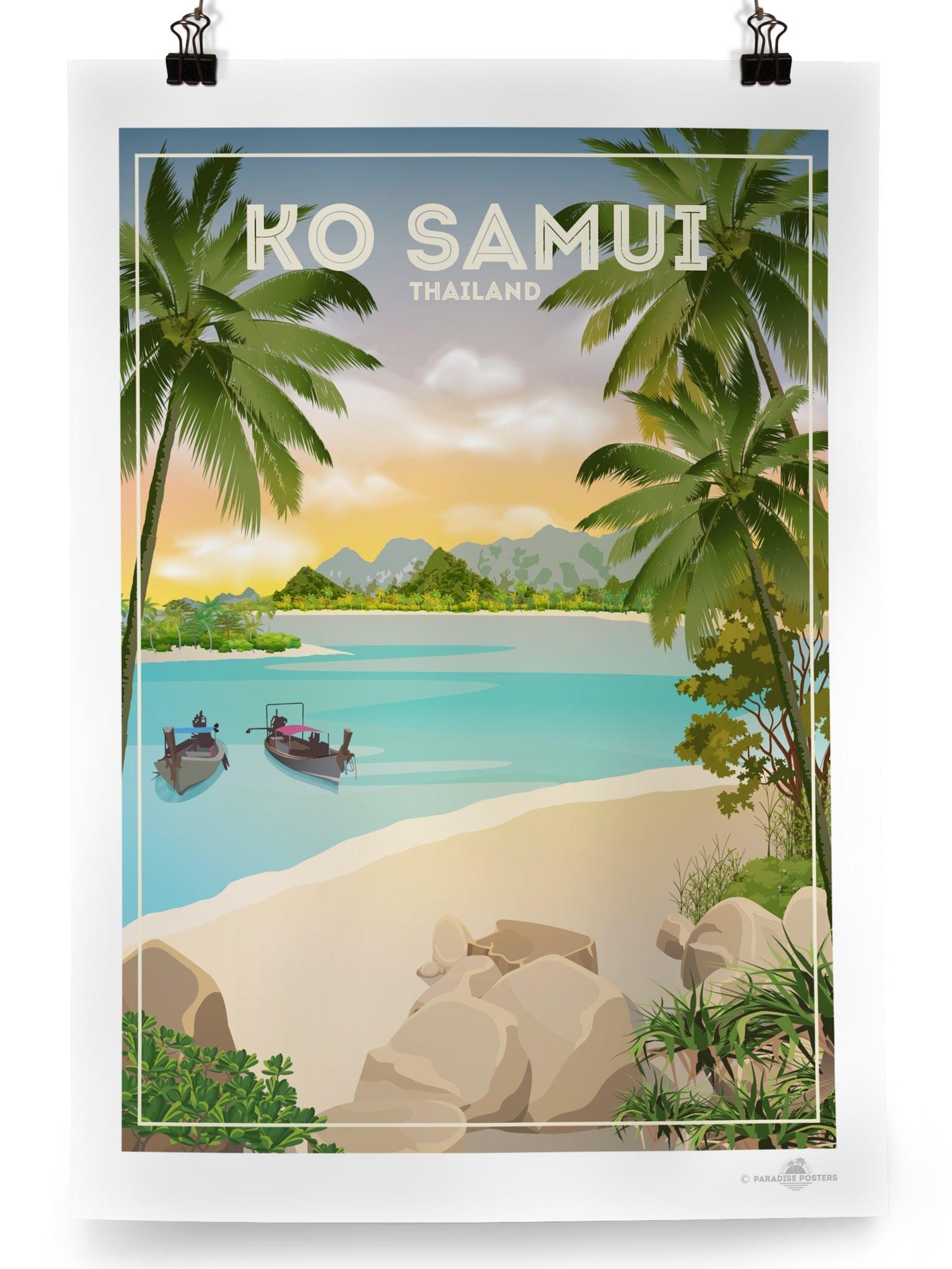 Experience the beauty of Ko Samui, Thailand with this stunning poster print. Featuring a breathtaking view of the island's crystal clear waters and lush greenery, this print will transport you to paradise every time you look at it.