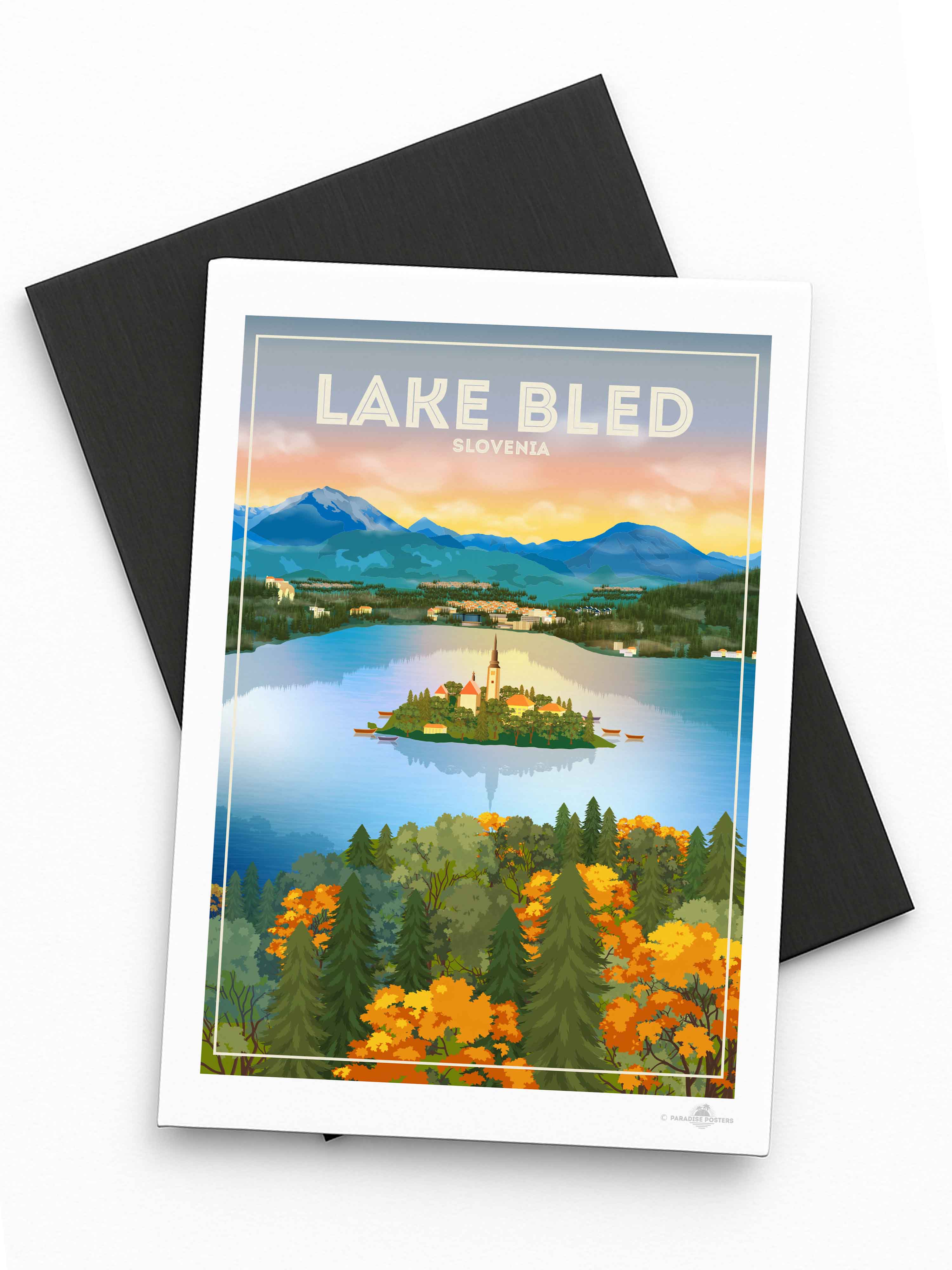 In the centre of the lake is the picture perfect Bled Island, which we’ve shown in our poster design. The teeny little island is only accessible by boat (the preferred kind being a Plenta, which is a kind of gondola) and hosts one of the area’s greatest tourist attractions – Church of the Assumption. Built in 1655, the church is reached by climbing 99 steps to the top. Still a popular wedding location to this day, it’s tradition for the Groom to carry their new Bride all the way to the top continues to and ring the bell inside to wish luck over the marriage.