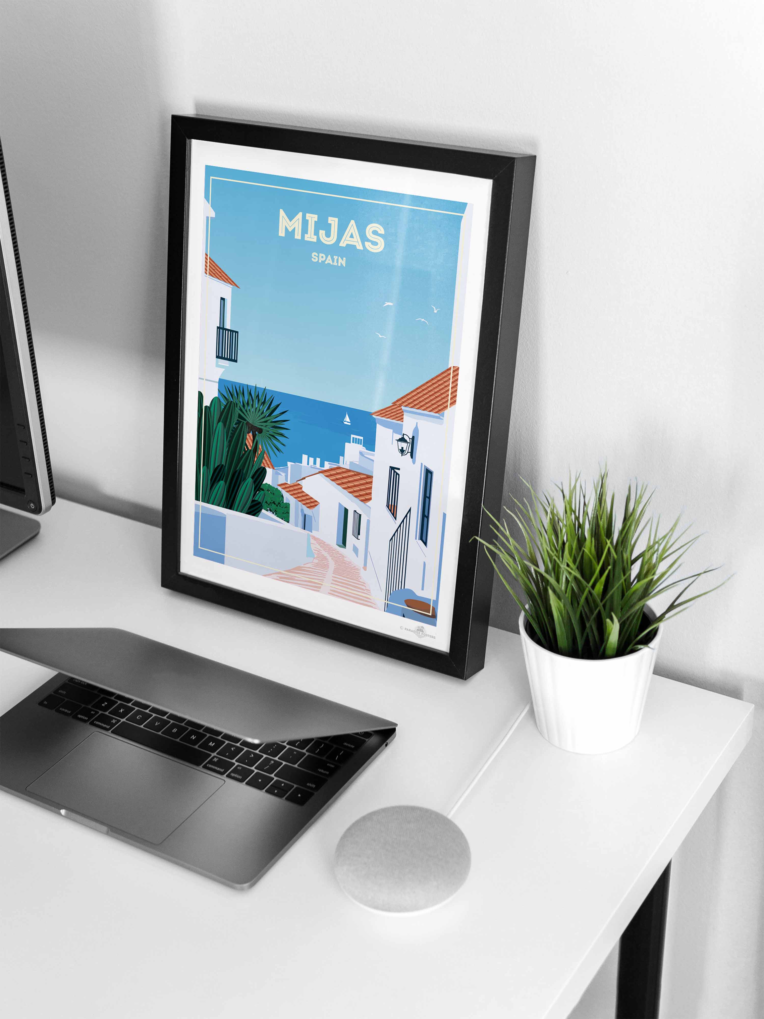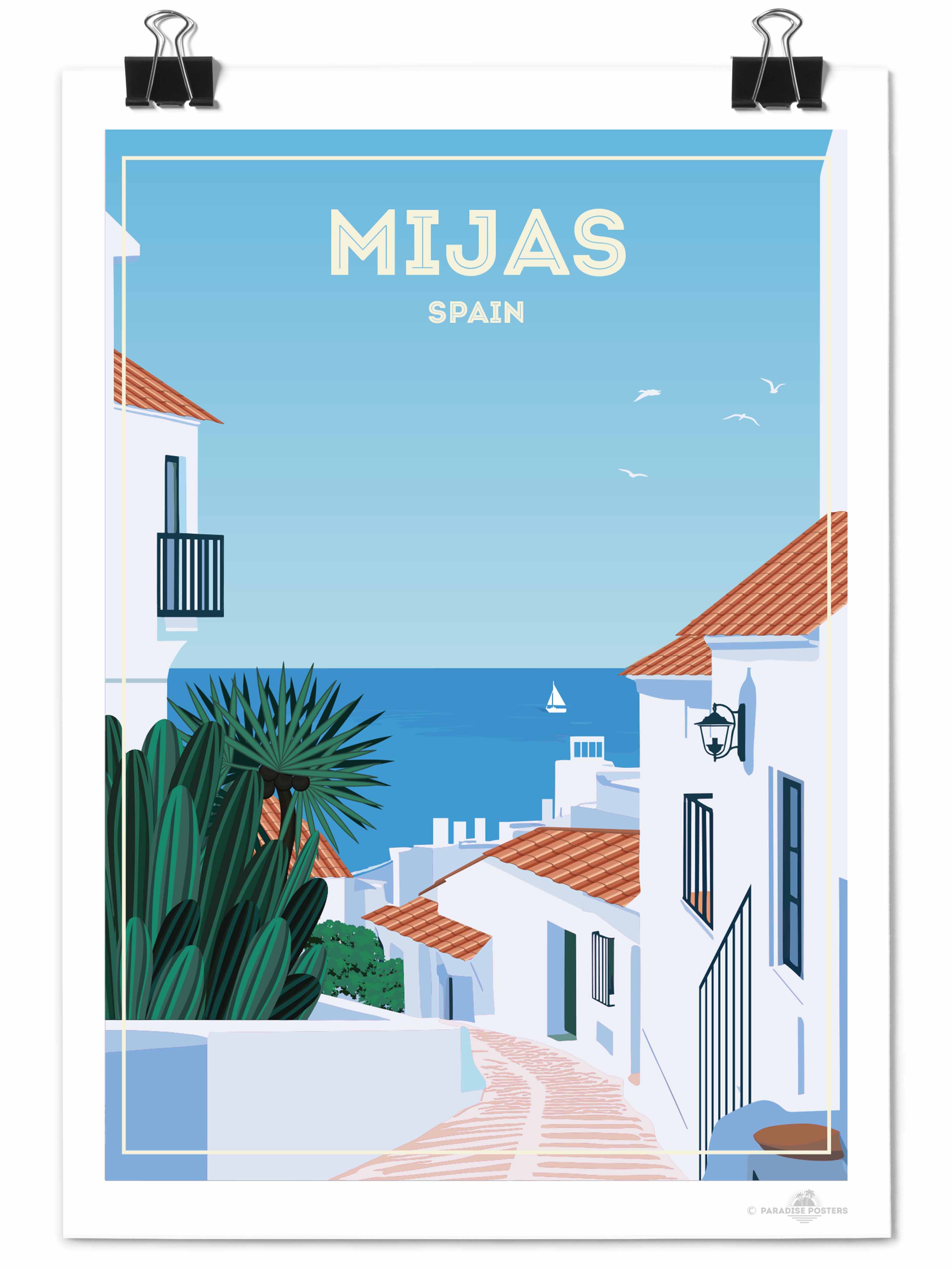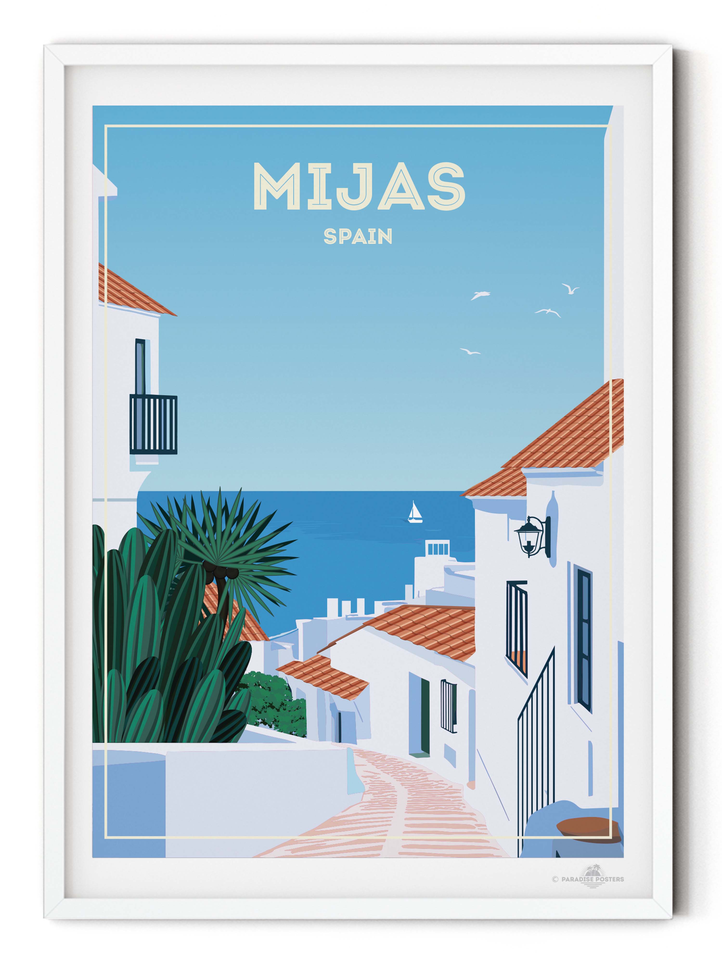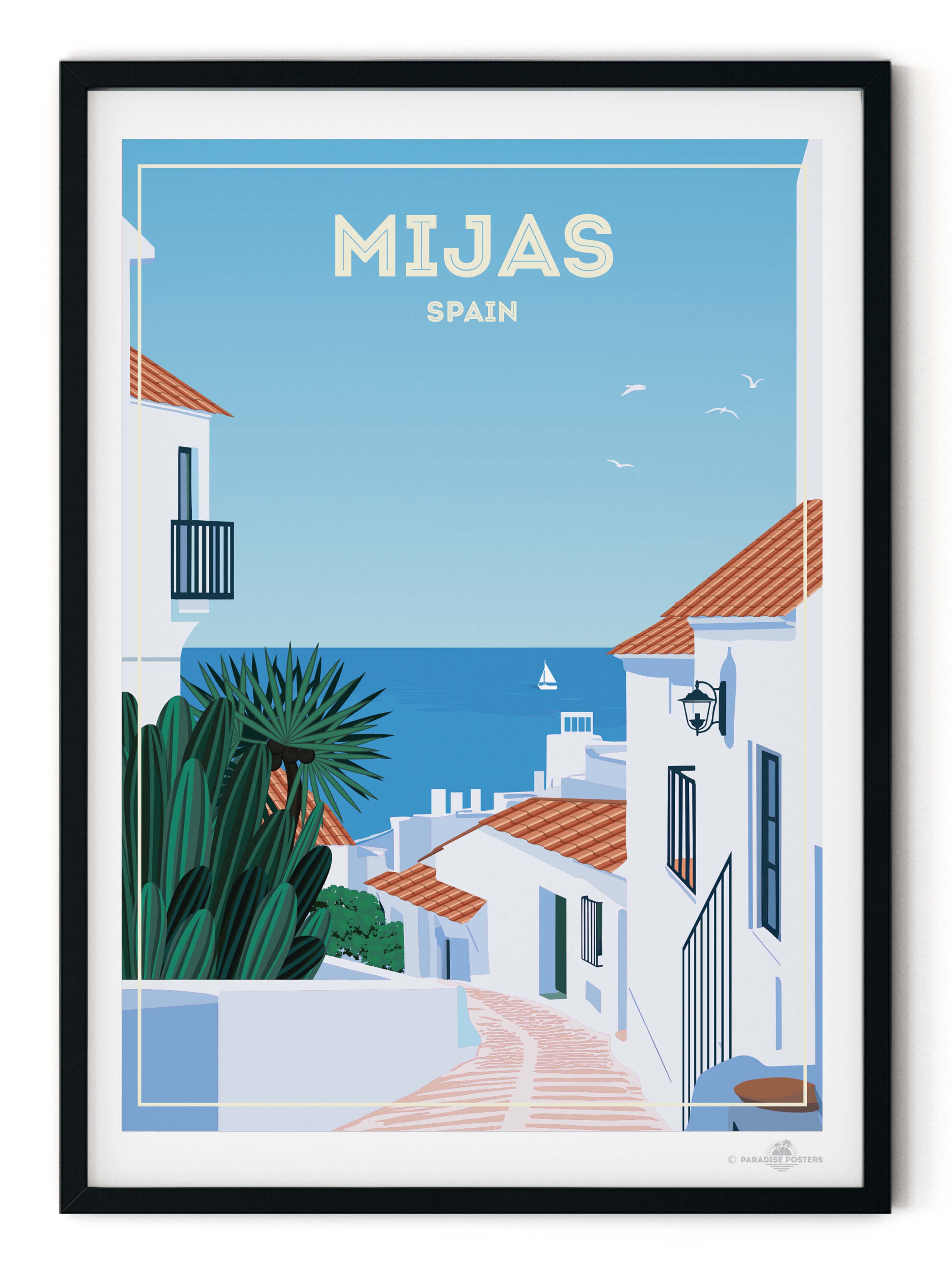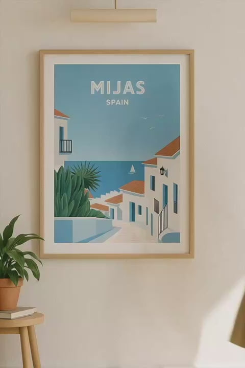 Bring the charm of southern Spain into your home with this beautiful Mijas, Spain Travel Poster 🇪🇸✨. Inspired by the breathtaking beauty of Mijas Pueblo, this artwork captures the essence of one of Andalusia’s most picturesque whitewashed villages. Nestled in the hills above the Costa del Sol, Mijas is famous for its narrow cobblestone streets, colourful flower pots, traditional Andalusian architecture, and sweeping views of the Mediterranean Sea.