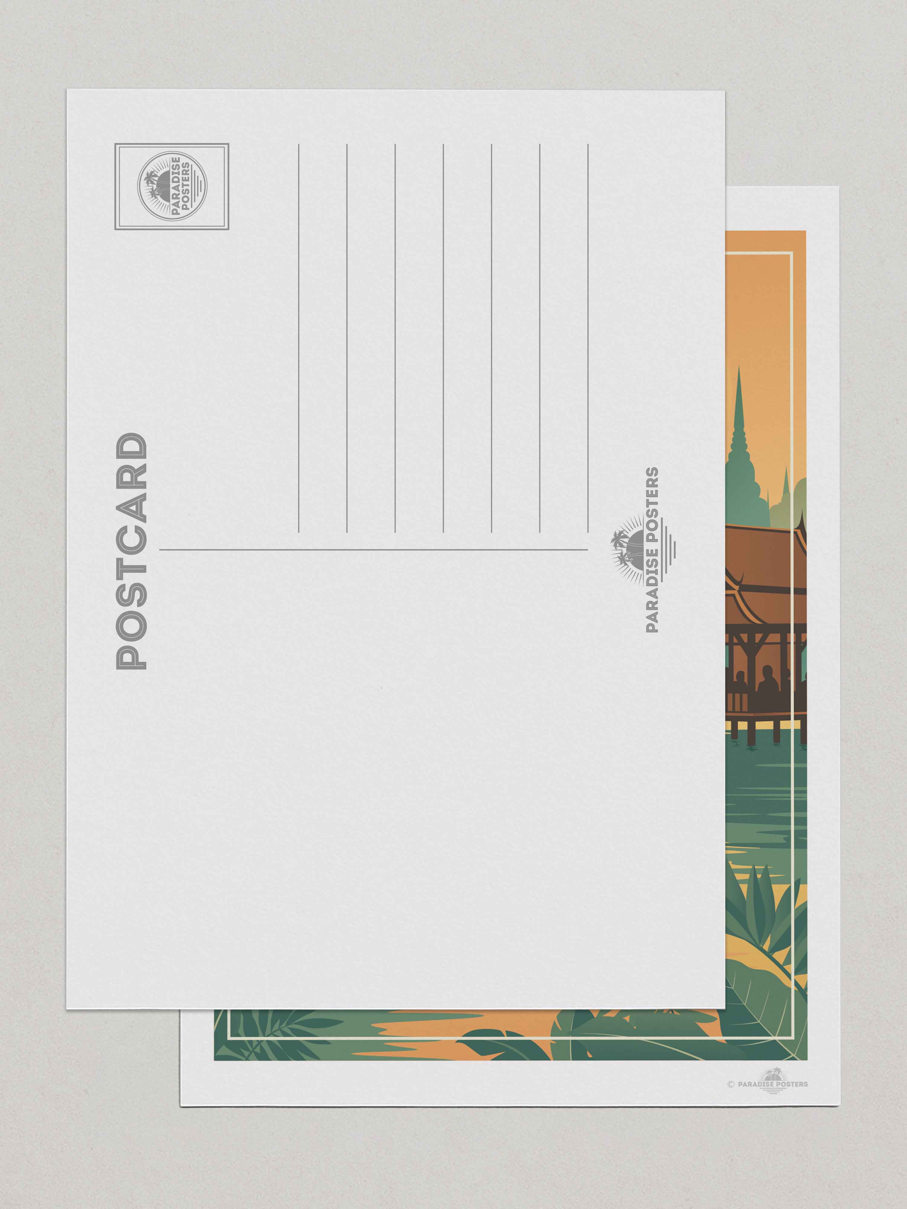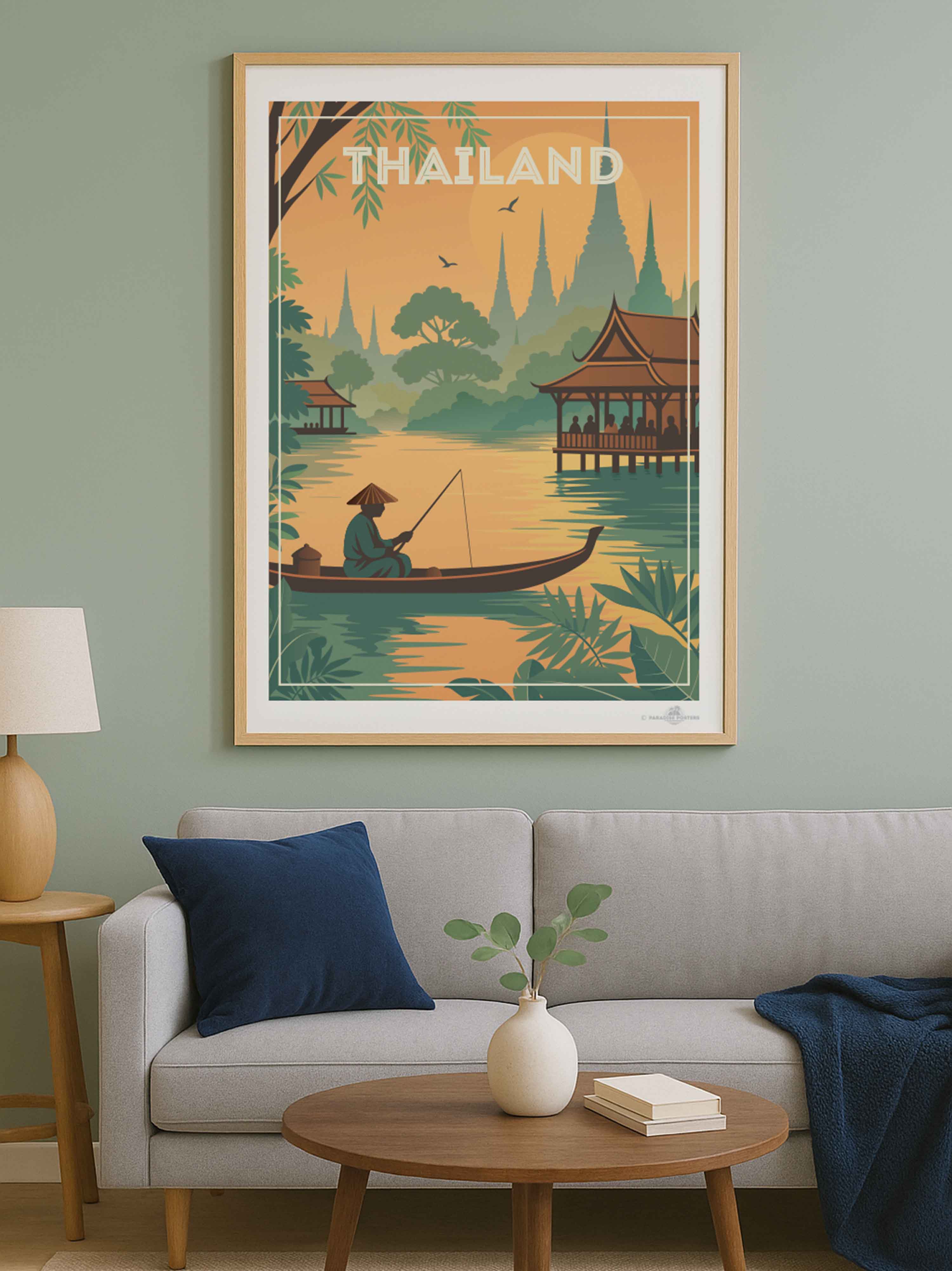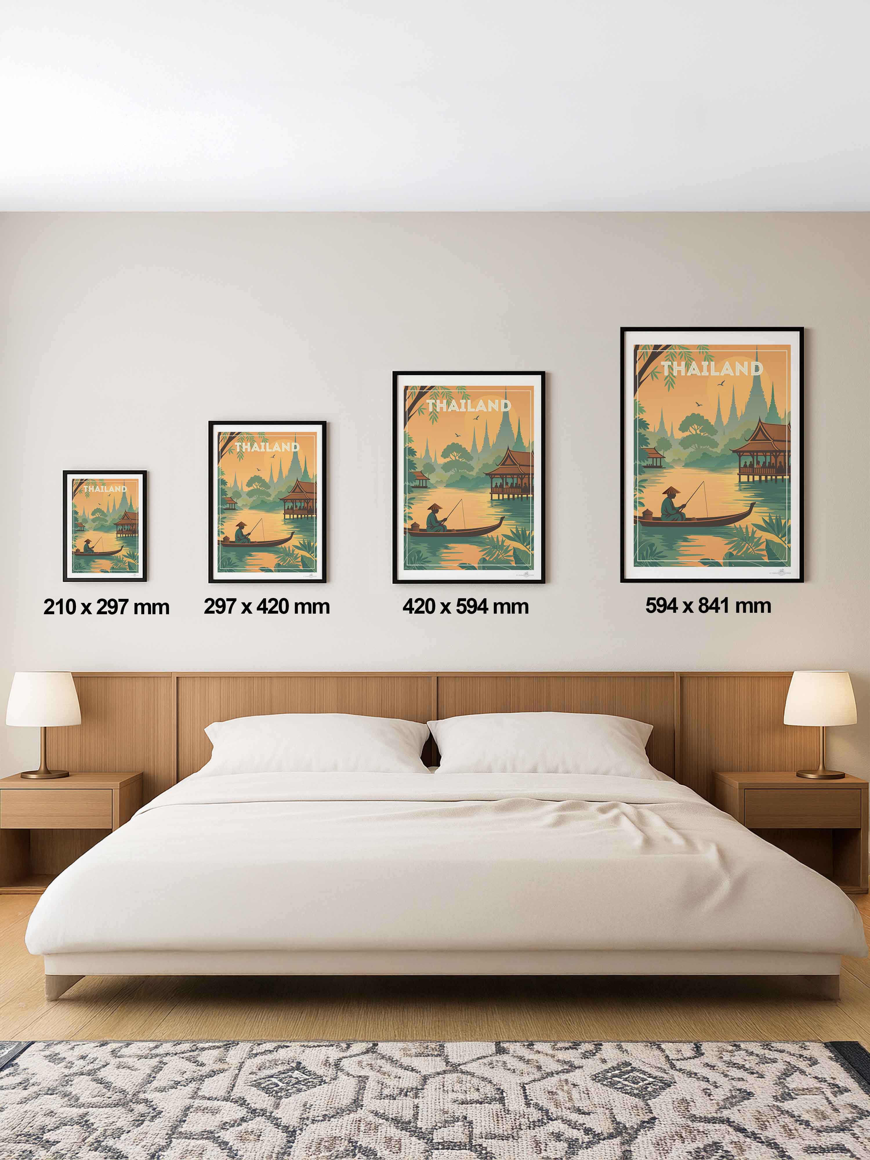 Rendered in warm sunset hues and soft, stylised detail, this artwork brings the calm and mystique of Southeast Asia into your space - perfect for world travellers, adventurers, or lovers of tropical serenity.